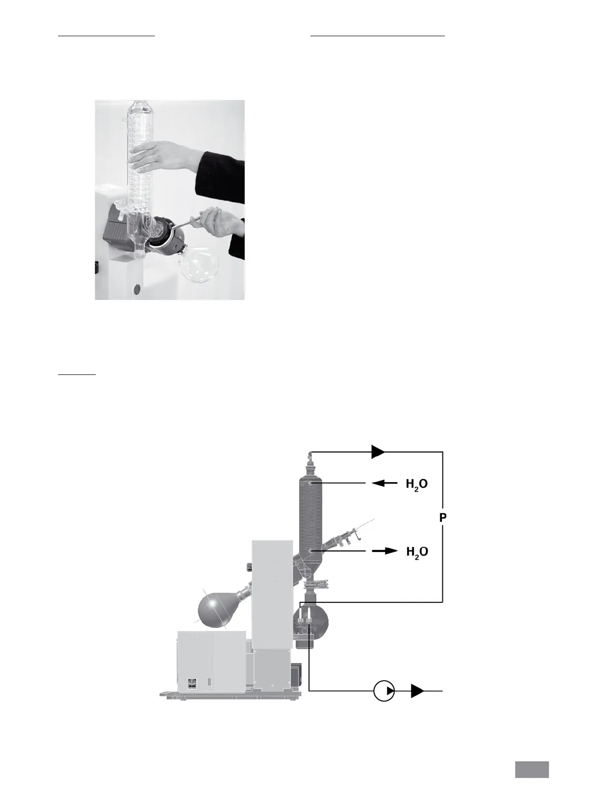 Raccordez toujours le flexible de vide au condenseur en son point le plus élevé pour éviter les pertes de solvants par aspiration.