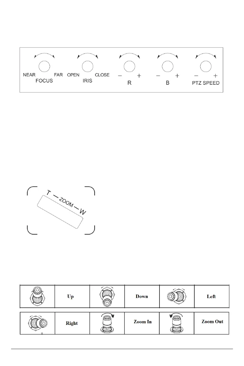 [PTZ SPEED-] [PTZ SPEED+] Adjust PTZ Speed 1-8: “-” = Slow. “+” = Fast.