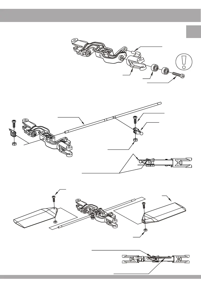 of the rotor head. As with the standard Piccolo, take care here that the flybar is symmetrical, and moves with complete
