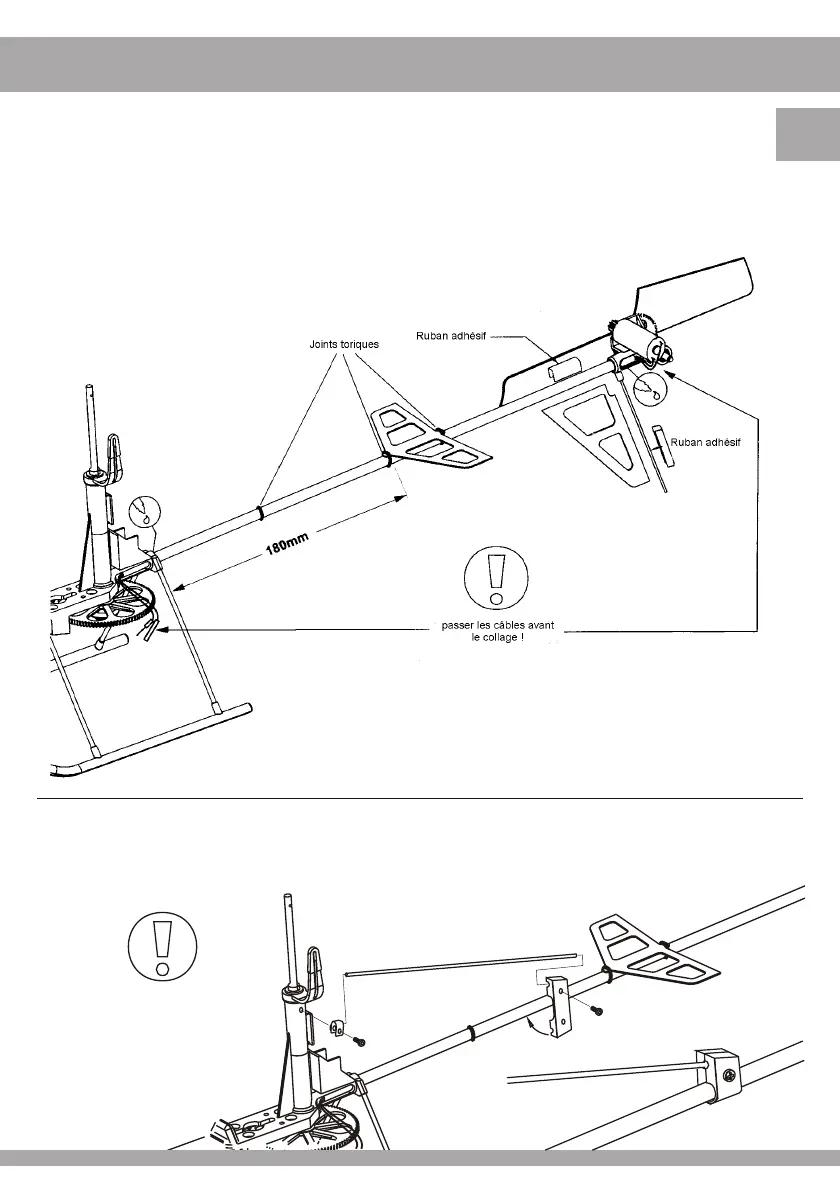 différents éléments entre eux. La dérive de l'anticouple se fixe avec du scotch sur le mât du suppor