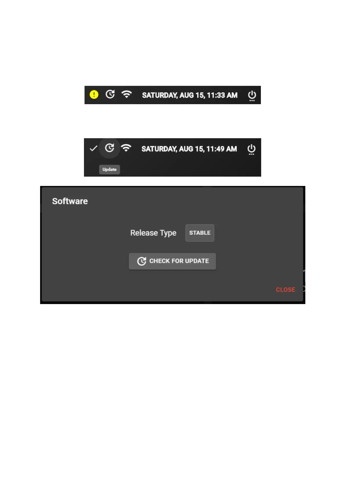 To update using the status bar, click on the update icon and a dialog will pop-up,