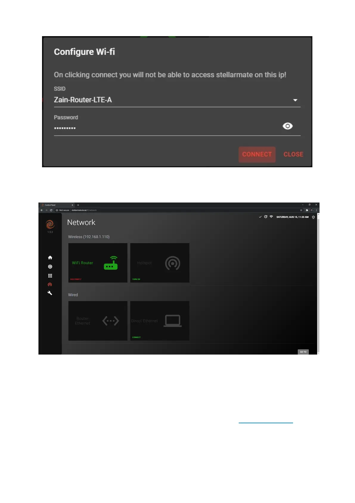 To connect to StellarMate through Router Ethernet, just connected an Ethernet