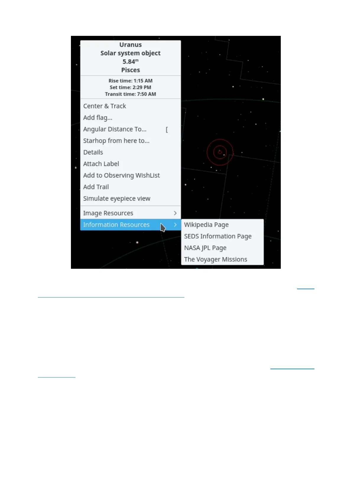 object's names ("Uranus"), object type ("Solar system object"), and the