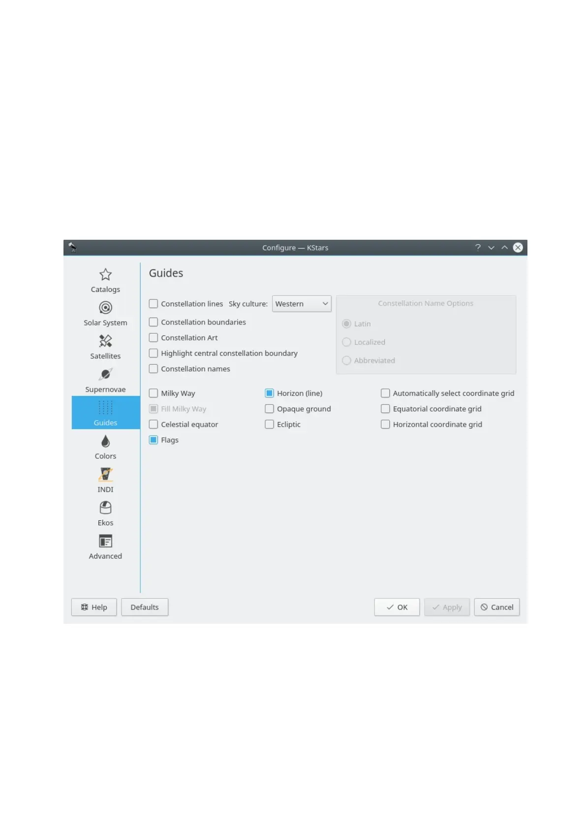 choose whether you would like to see Latin constellation names, IAU-standard