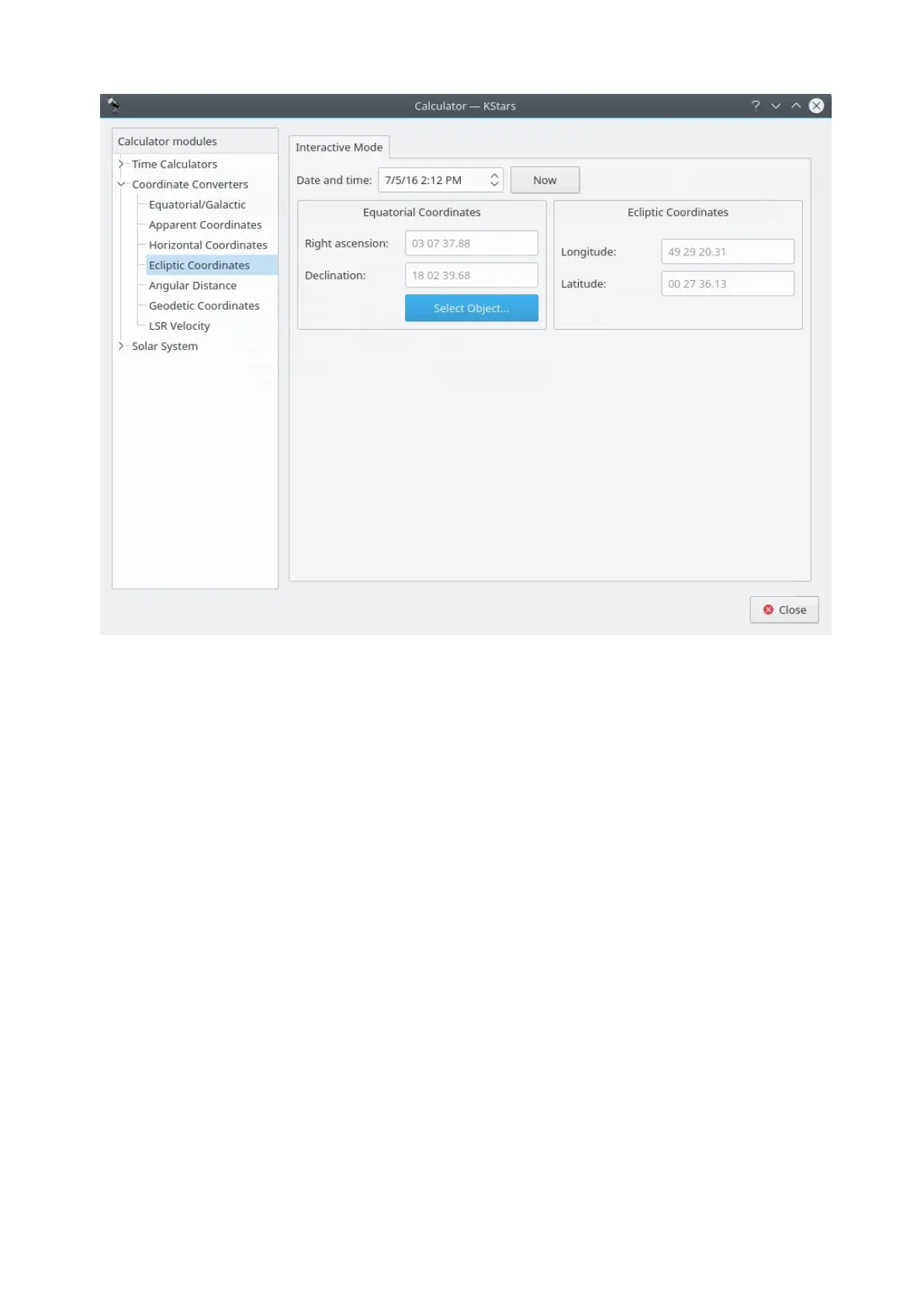 First, select Date & time. Then, fill in the coordinate values in either the Ecliptic