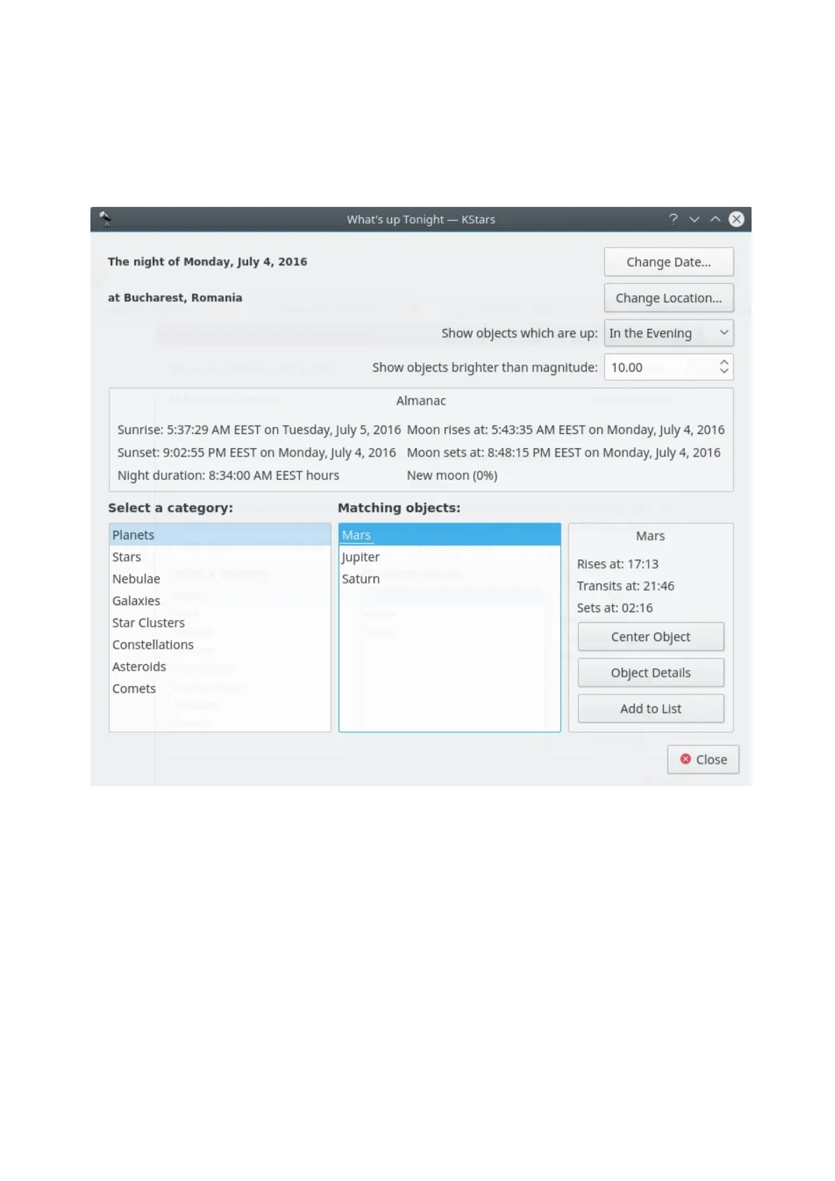selected night will be displayed in the box labeled Matching Objects. For example,