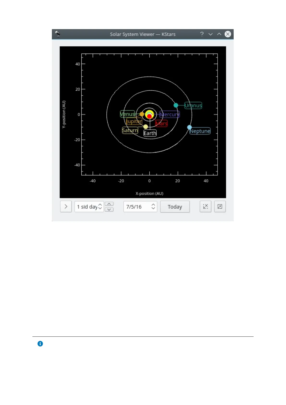 Sun; 9 is Pluto). If you center on a planet, it will be tracked as time passes in the
