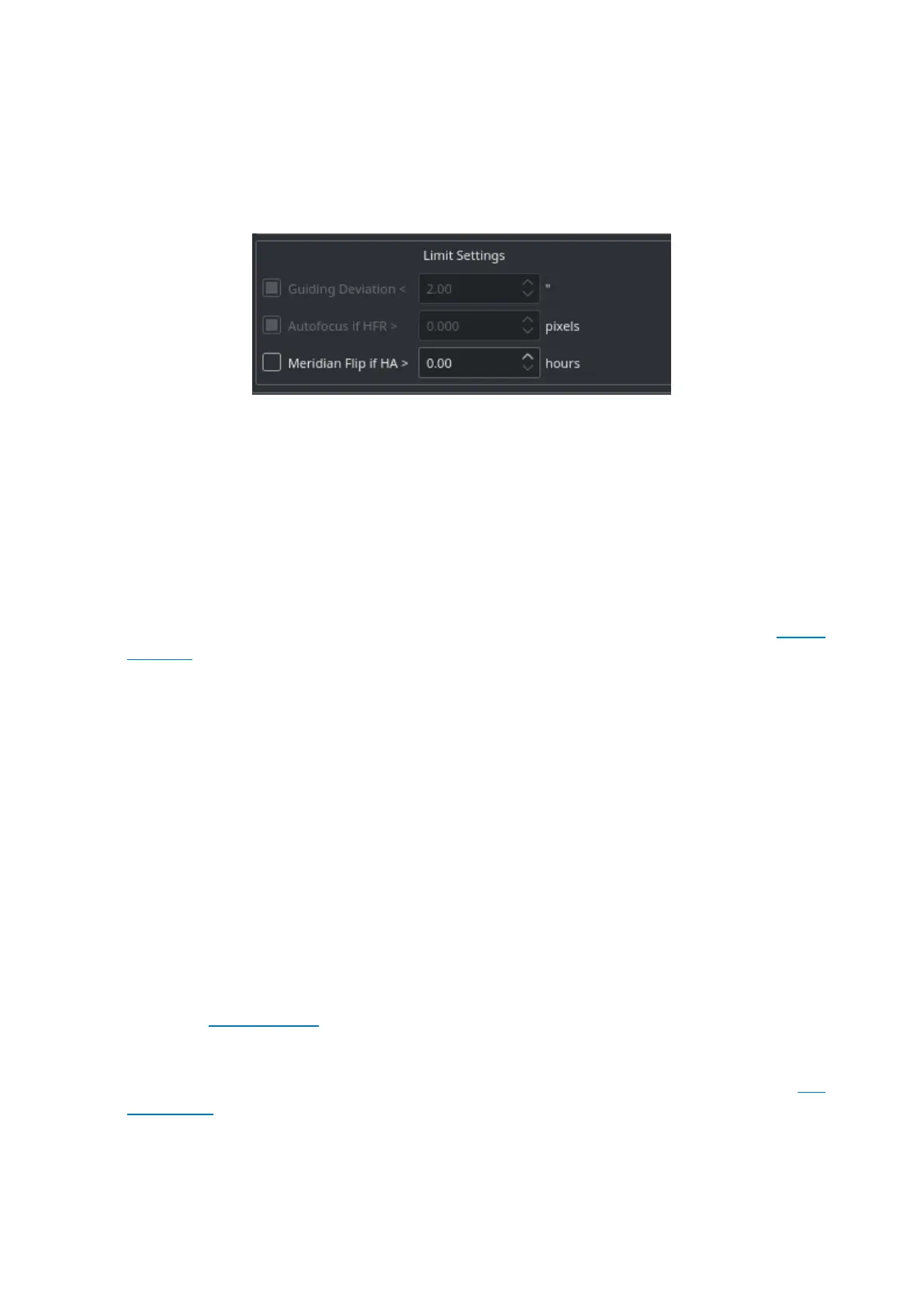 · Meridian Flip: If supported by the mount, set the hour angle limit (in hours)