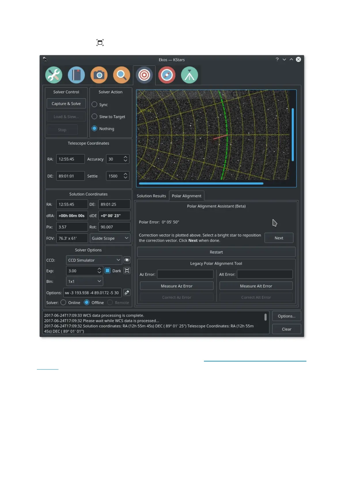 Using the Polar Alignment mode, Ekos can measure and correct the polar