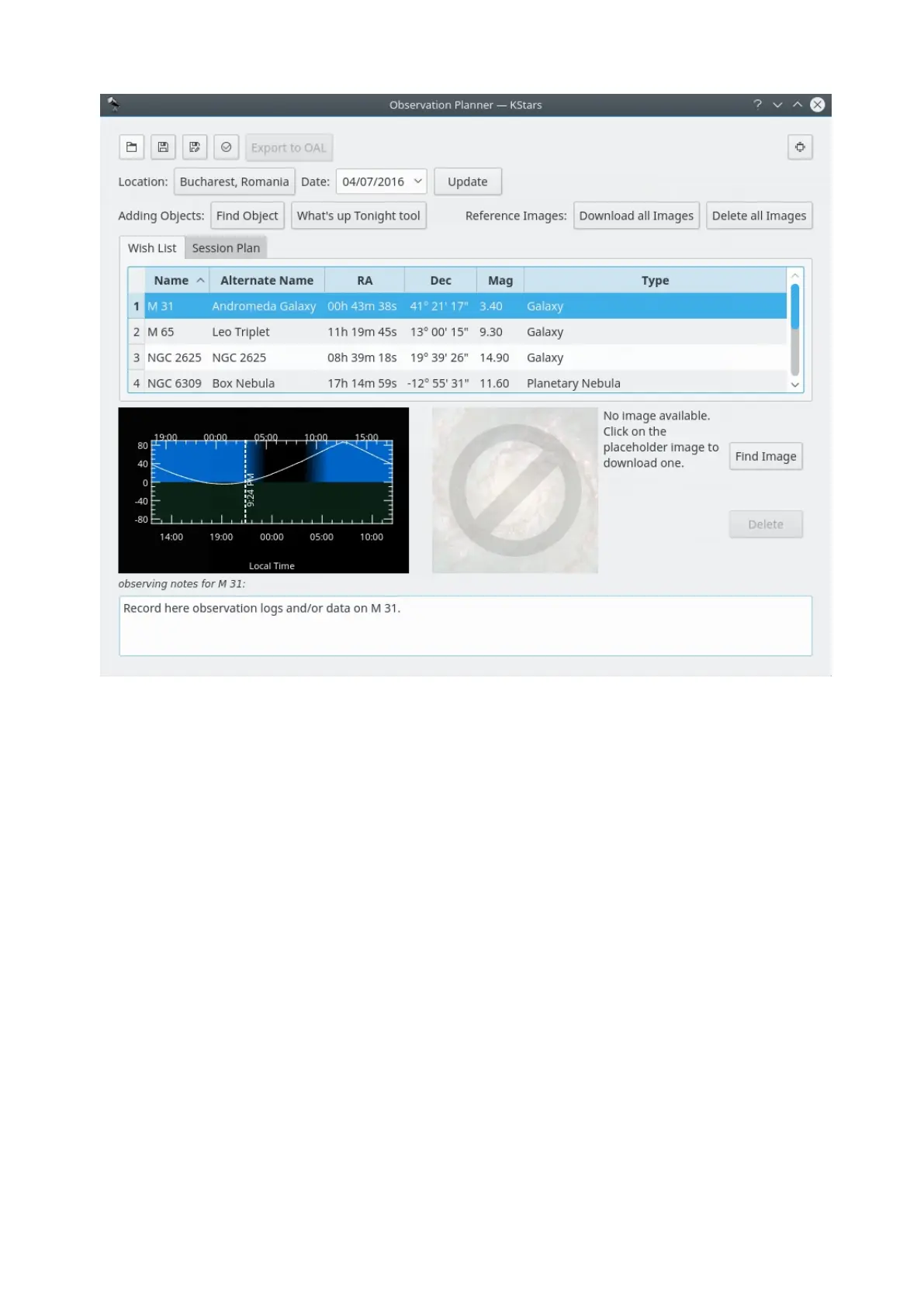 Inside Observation Planner window you can see the “Altitude vs Time” widget
