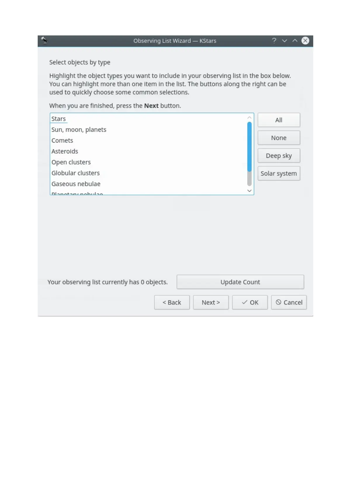 available for you: All over the sky (which is the default option), by constellation