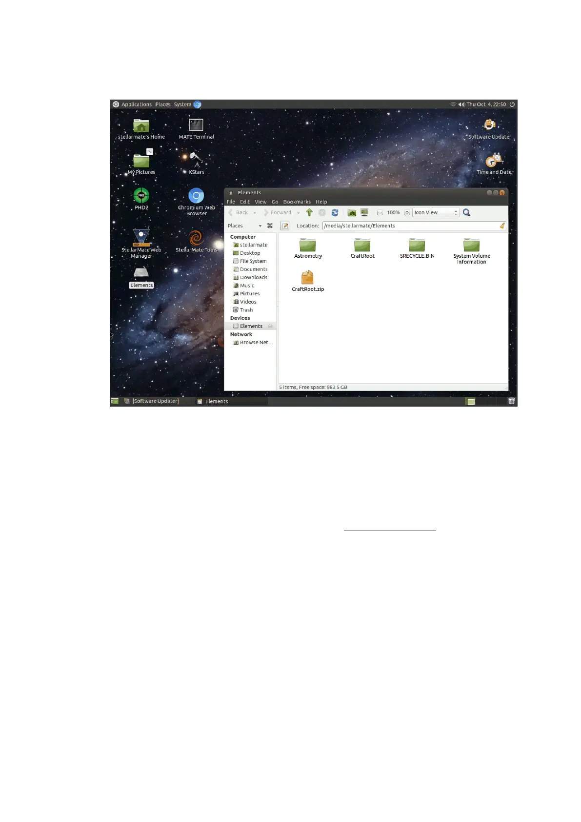 In the example above, the drive location is /home/stellarmate/Elements.