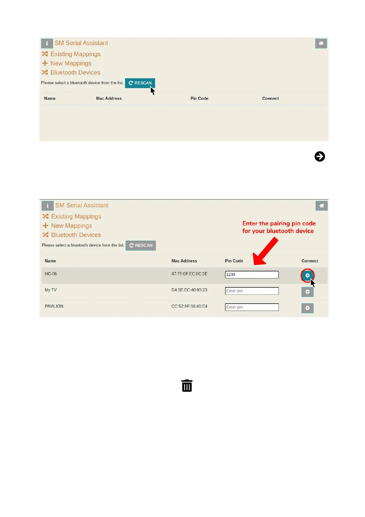 9. If you find your device, enter the pin code and then click on the Connect