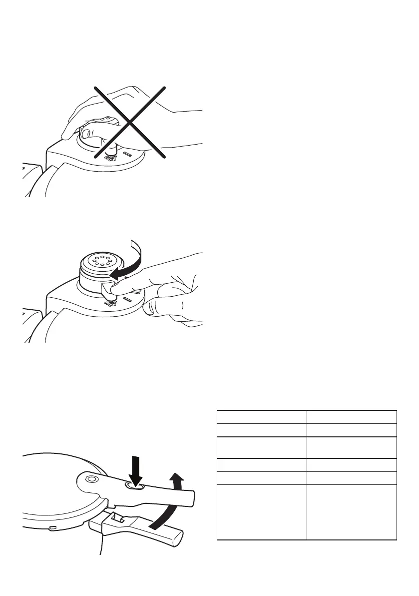 på grytehåndtaket 1. Merk! Idet du trykker inn