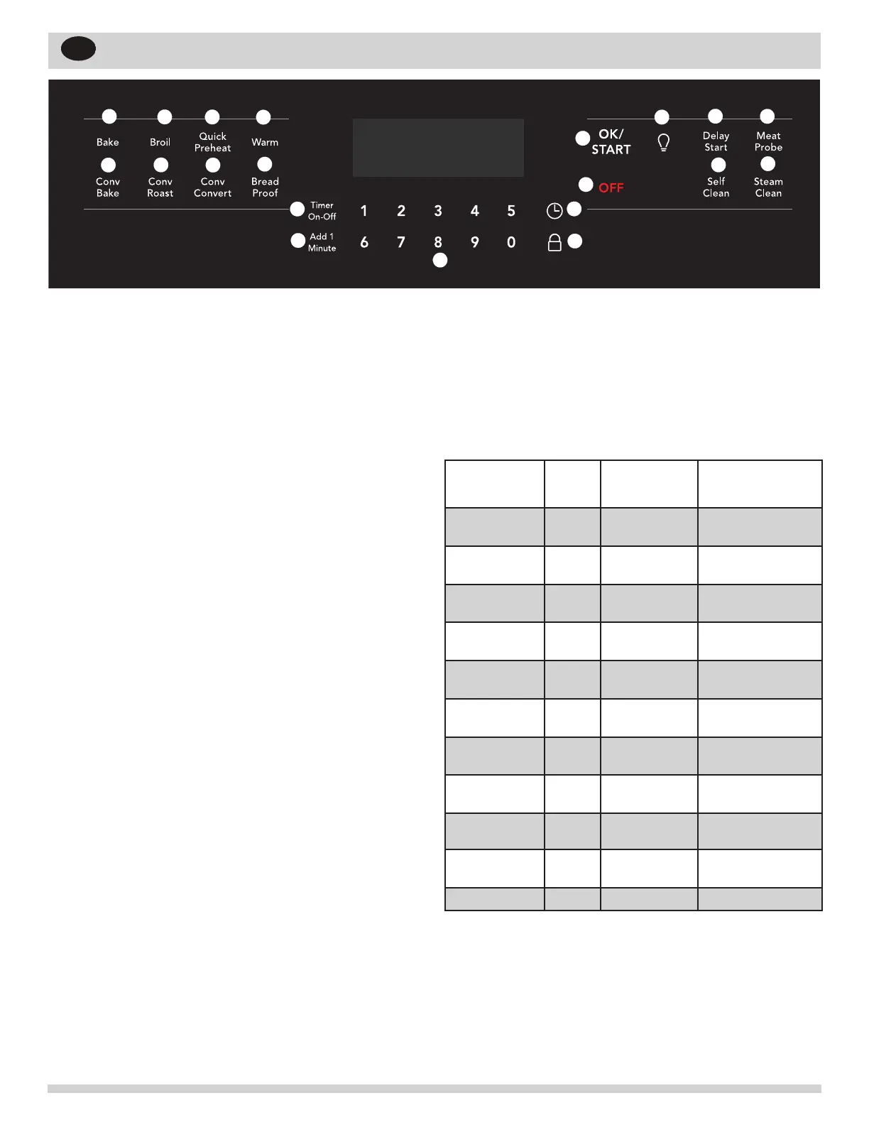 16. OFF - Use to turn off all cooking functions.