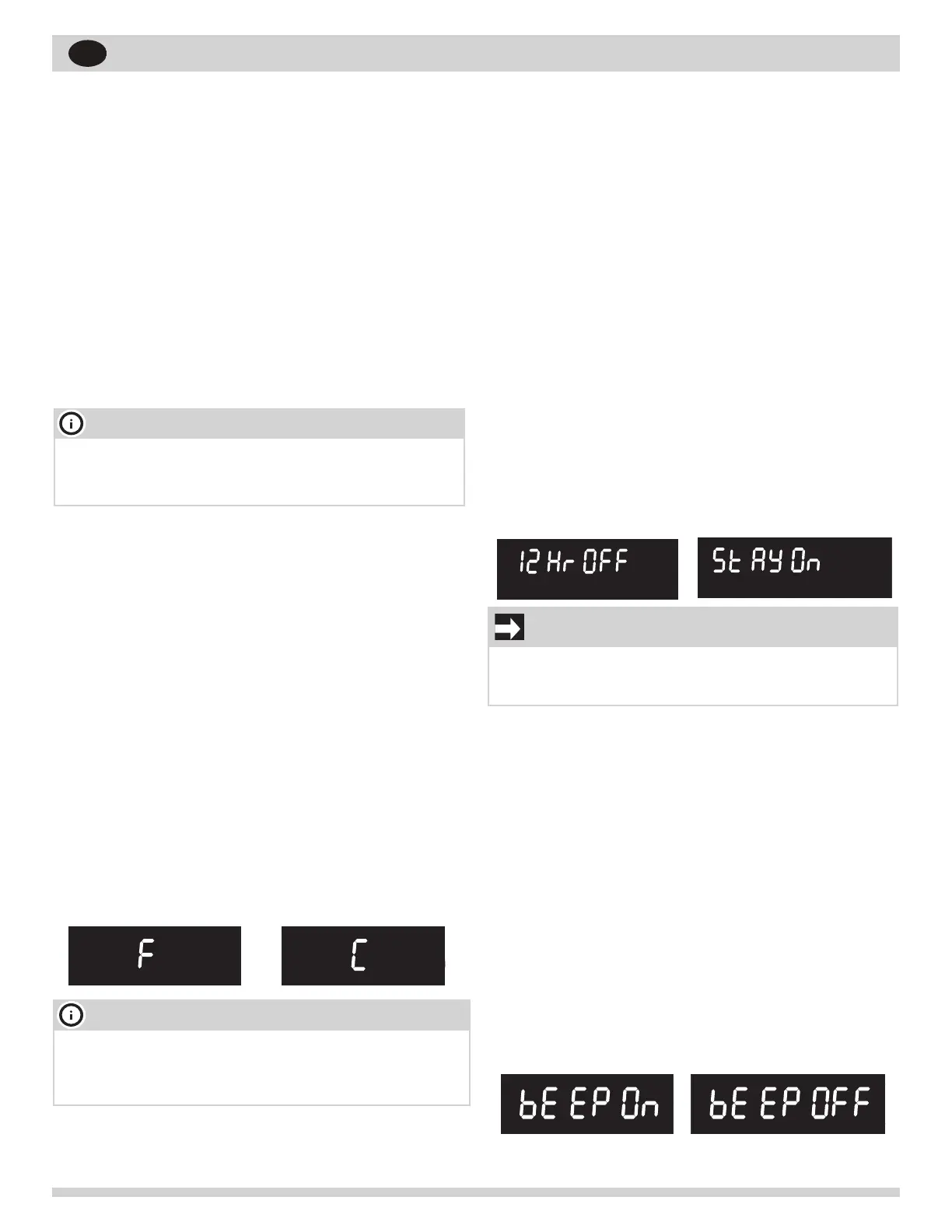 las 12 horas) y "Stay On" (horneado continuo).