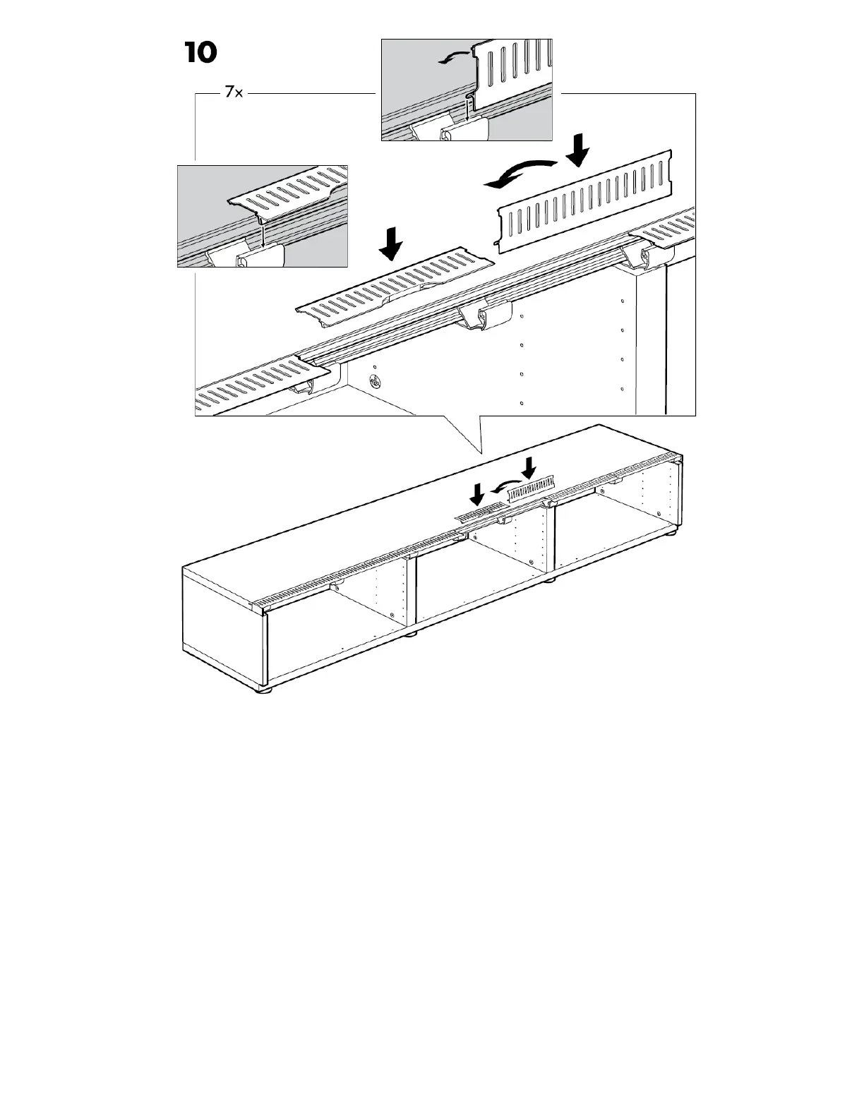 shelf. Push them into the clip and then rotate them down so that they cover up the clip