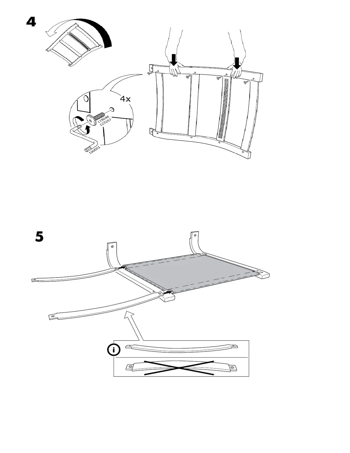 A. Slide two chair rails into the fabric for the chair. Make sure that the rails have the curve facing