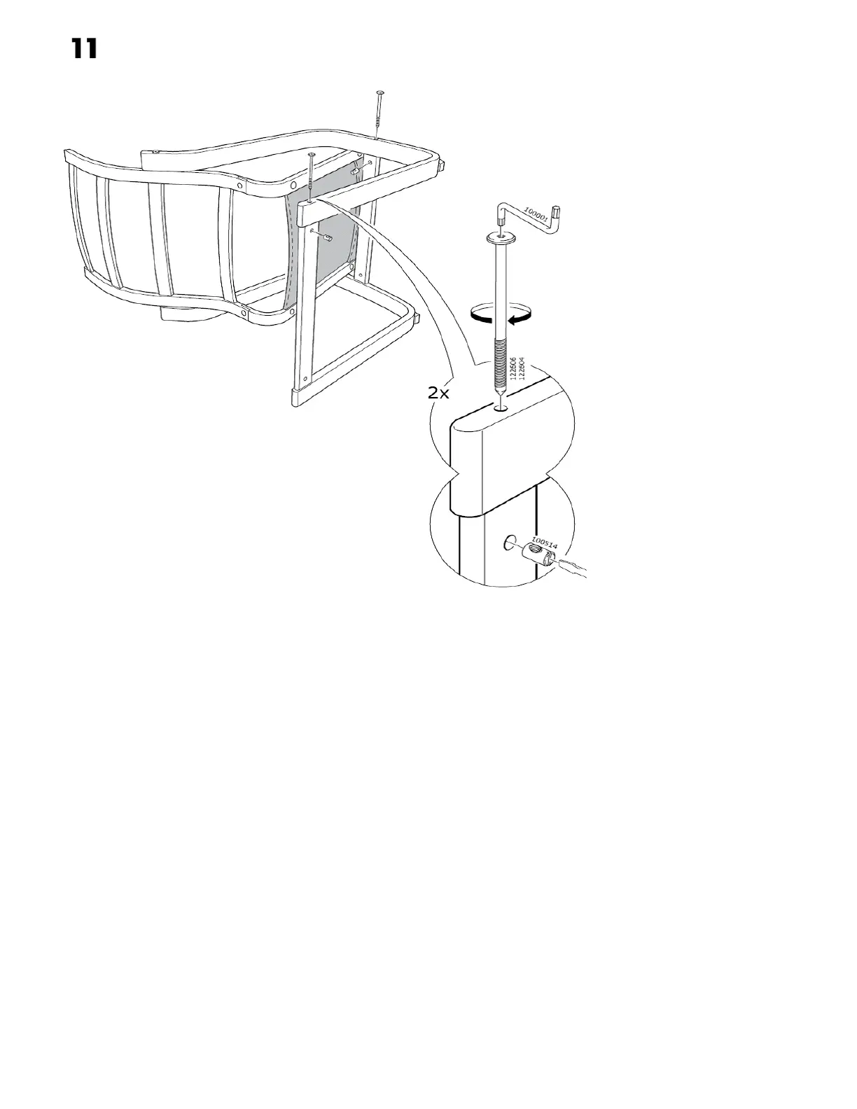 B. Insert long shank screw (#122606) into the hole in the leg. Push screw down until you feel