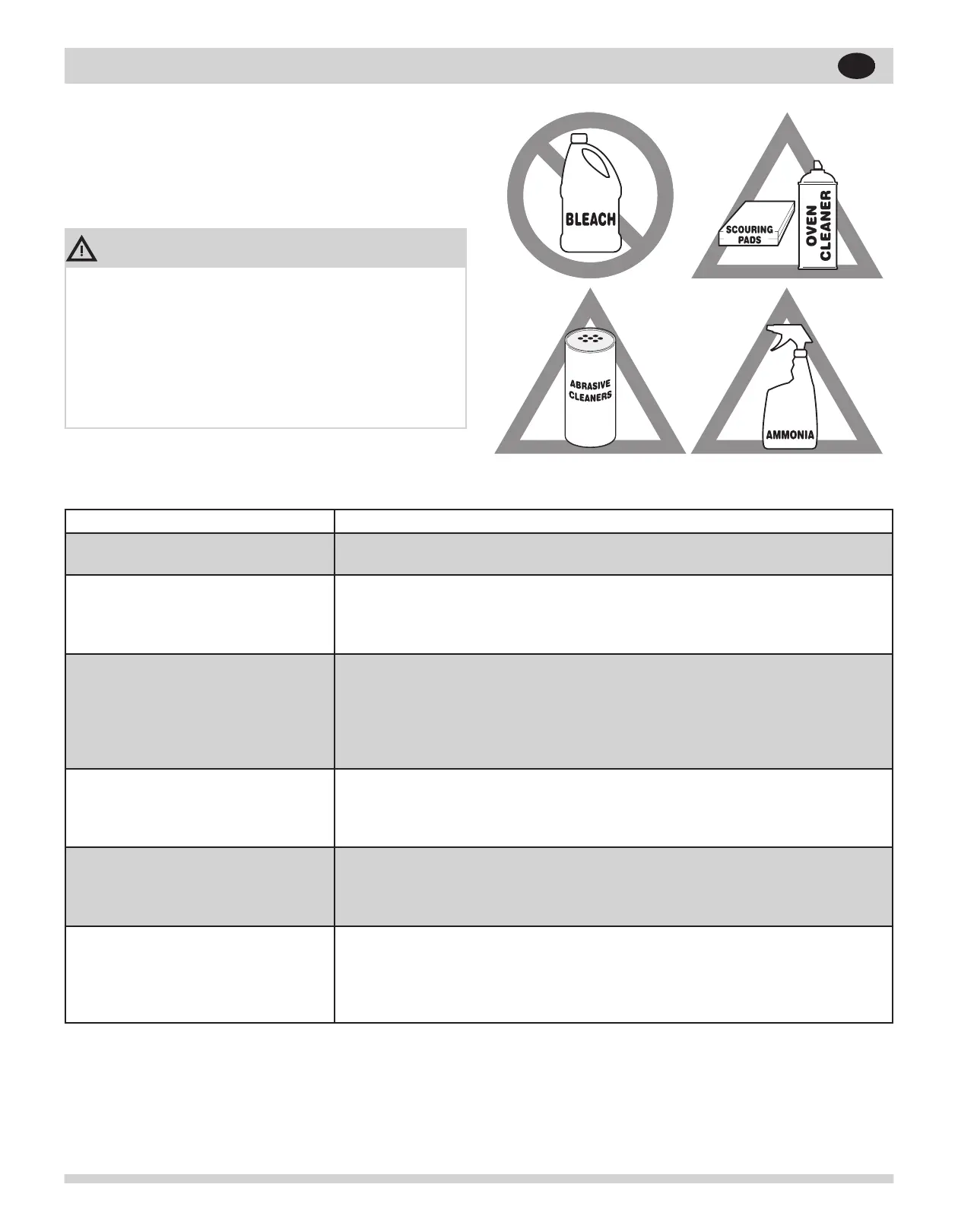 cleaner containing abrasives, chlorides, chlorine, or ammonia. These