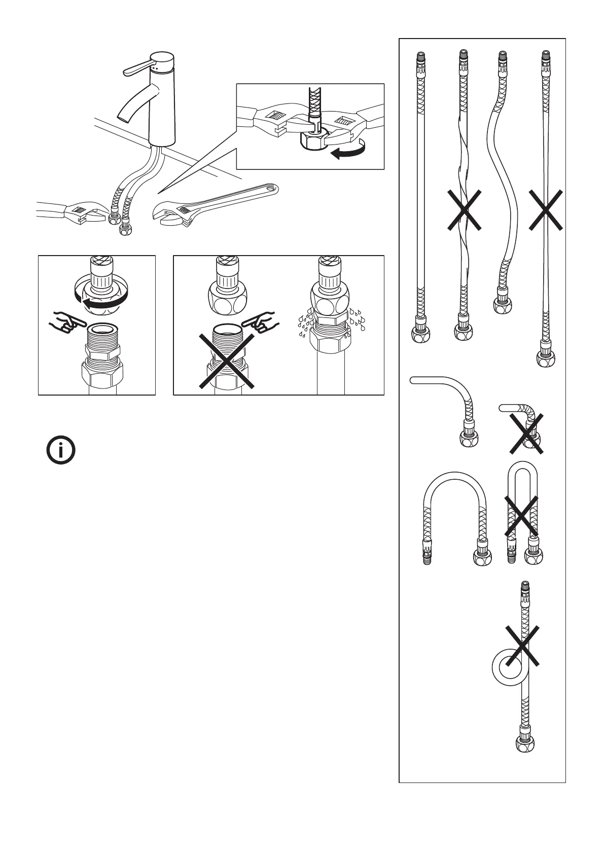 중요! 무리하게 조이지 마세요: 호스/파이프와 와셔가