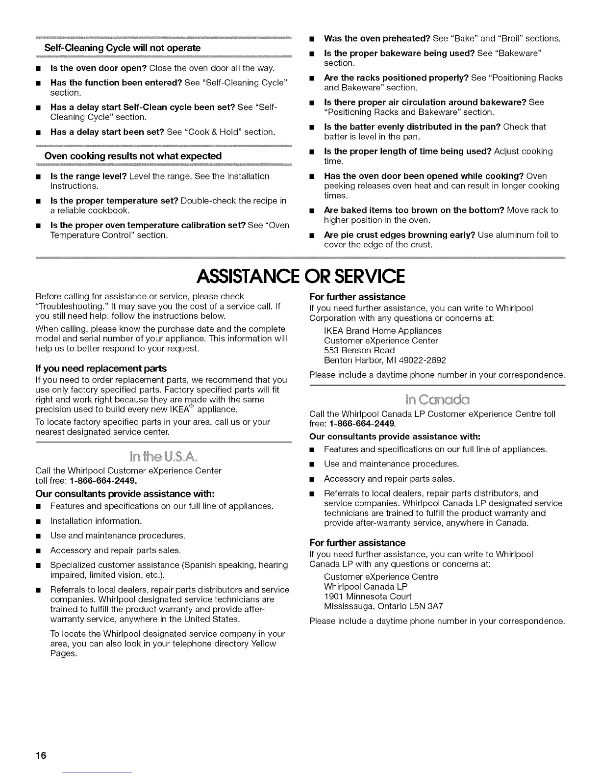 Call the Whirlpool Canada LP Customer eXperience Centre toll