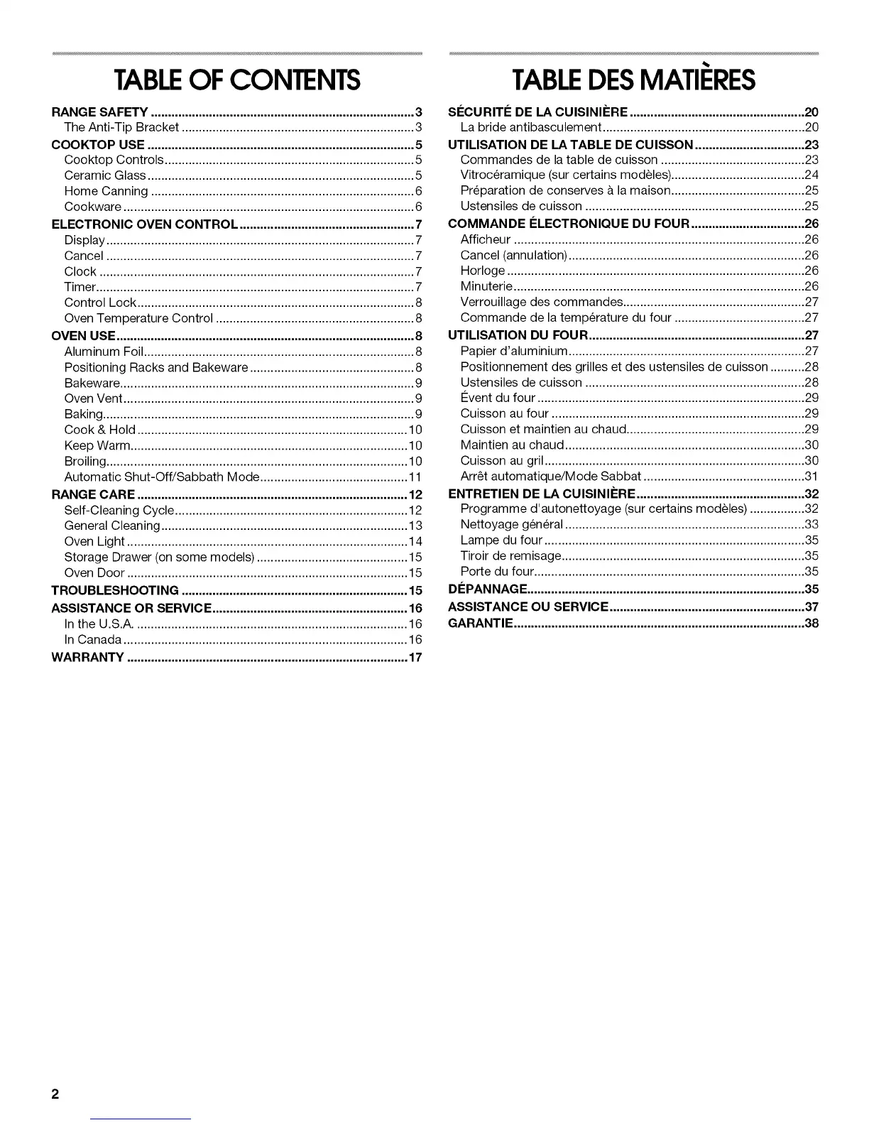 Storage Drawer (on some models) ............................................ 15