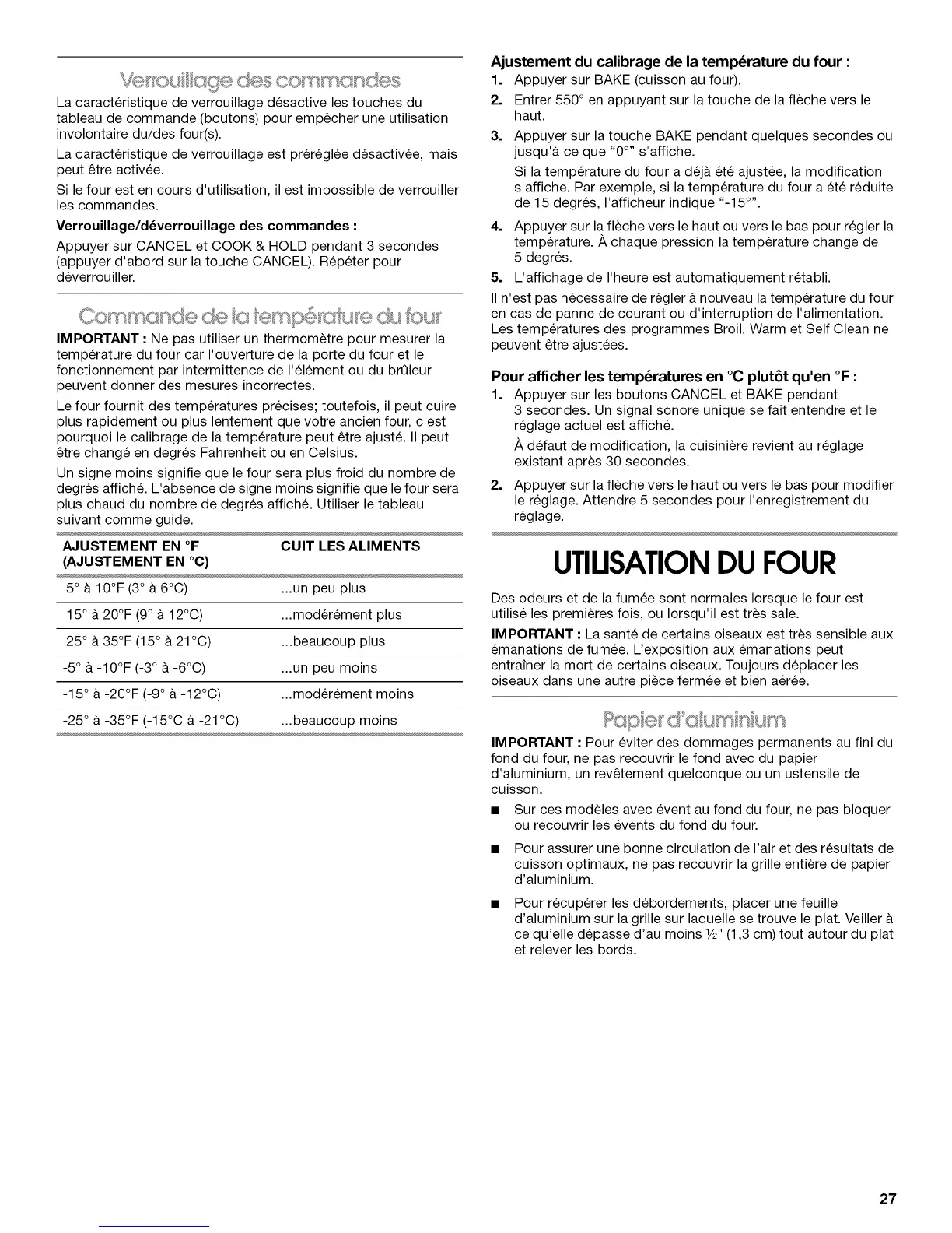 AJUSTEMENT EN °F CUlT LES ALIMENTS