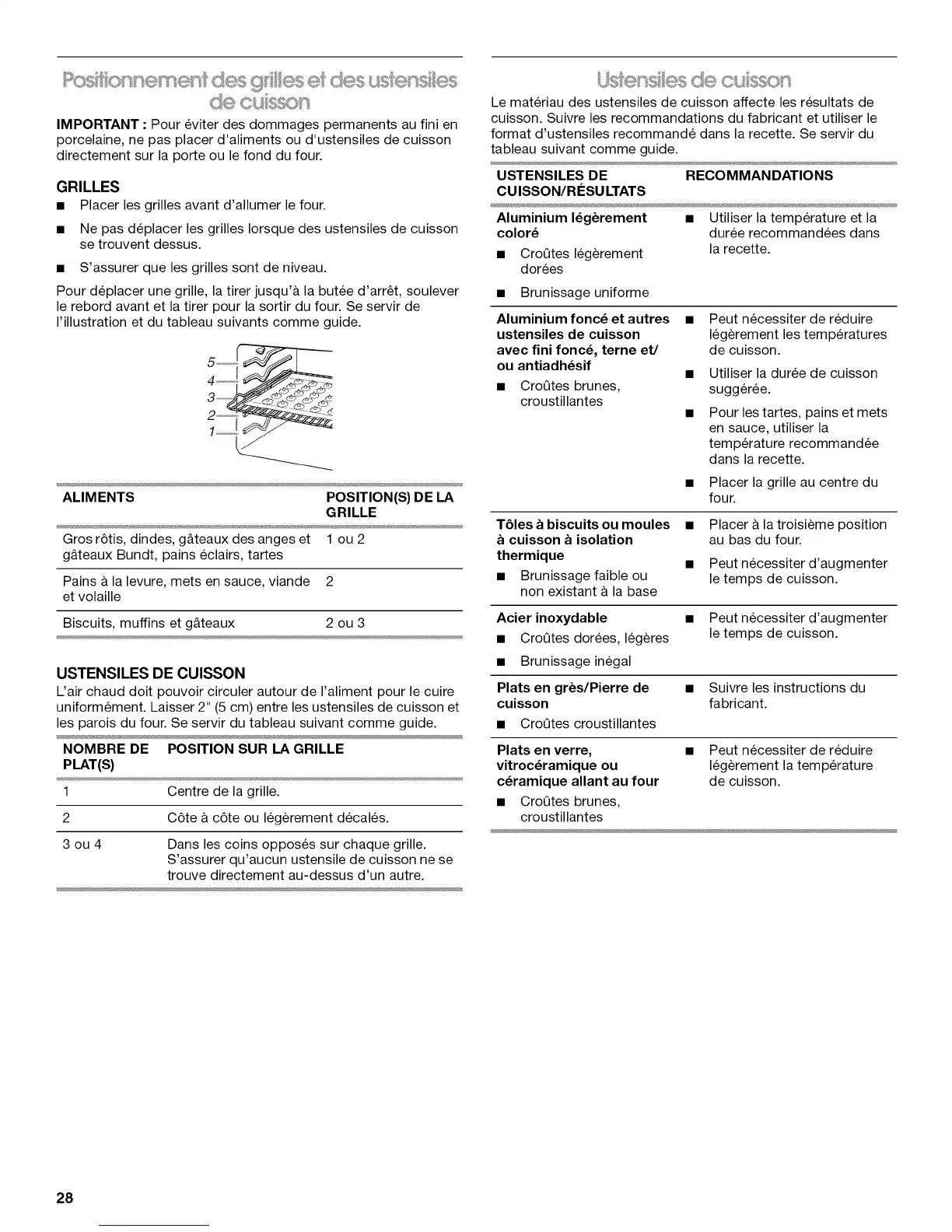 uniformement. Laisser 2" (5 cm) entre les ustensiles de cuisson et
