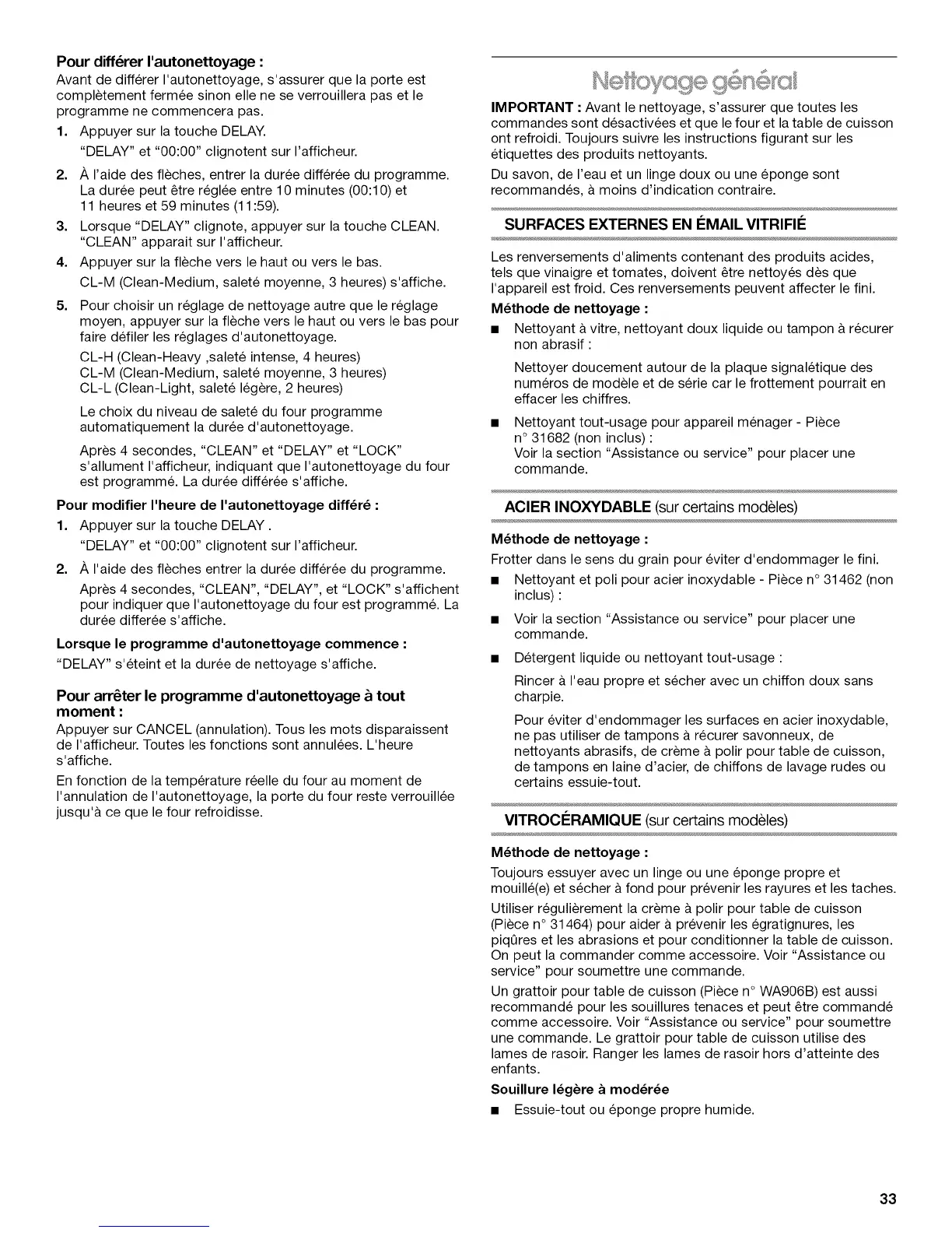 Avant de differer I'autonettoyage, s'assurer que la porte est