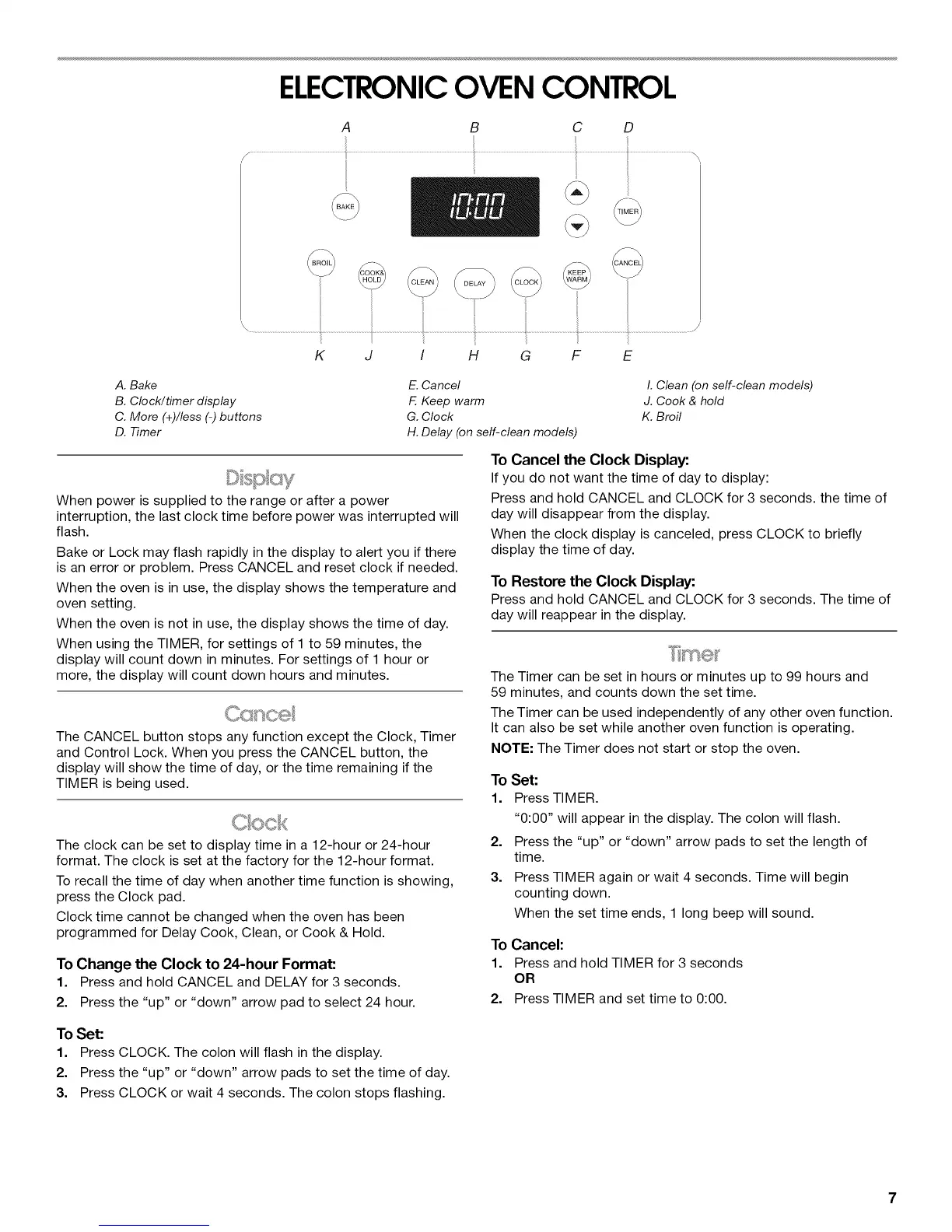 The CANCEL button stops any function except the Clock, Timer