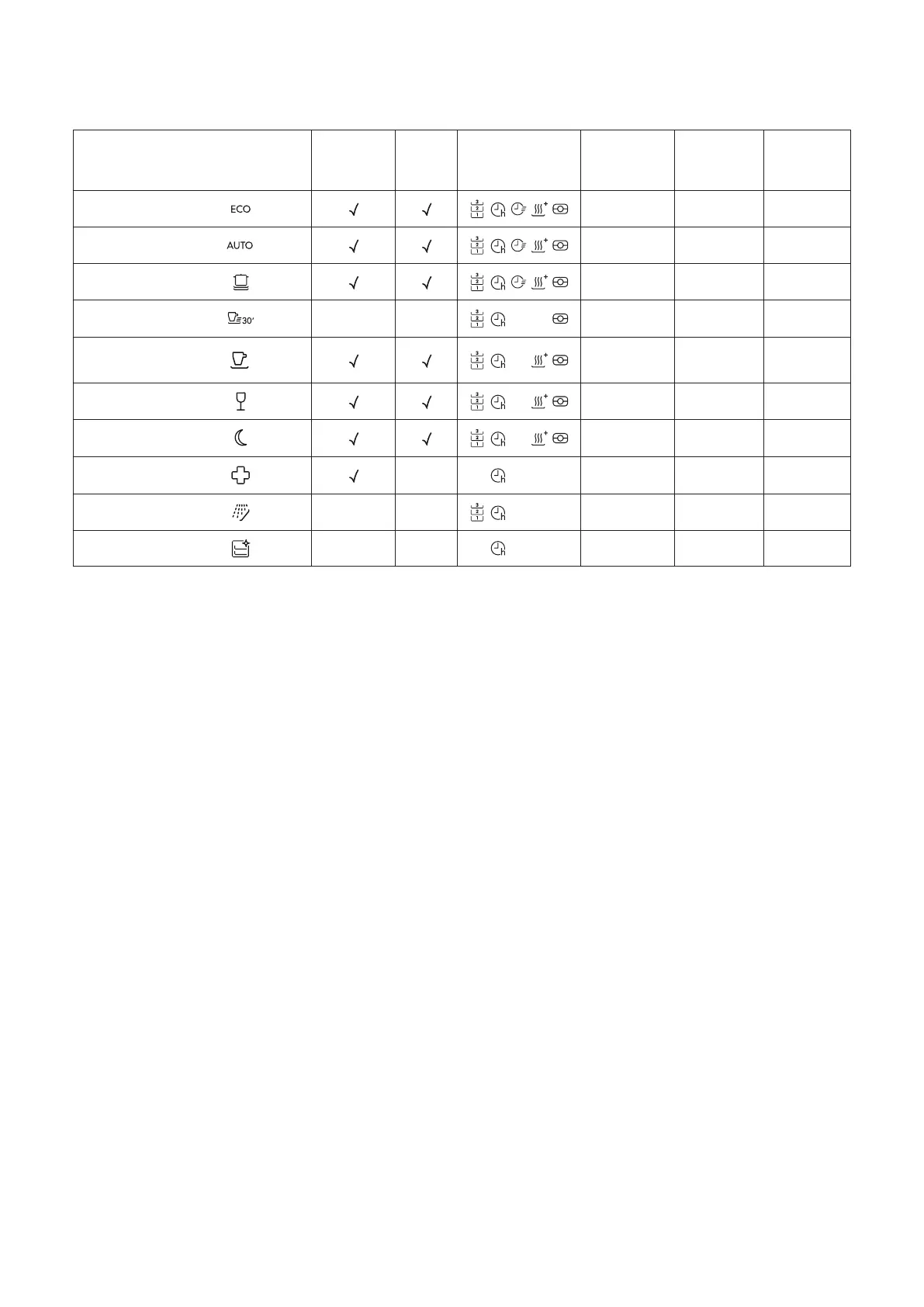 4. FAST WASH 30’ - Program to be used for half load of lightly-soiled dishes with no dried food residues.
