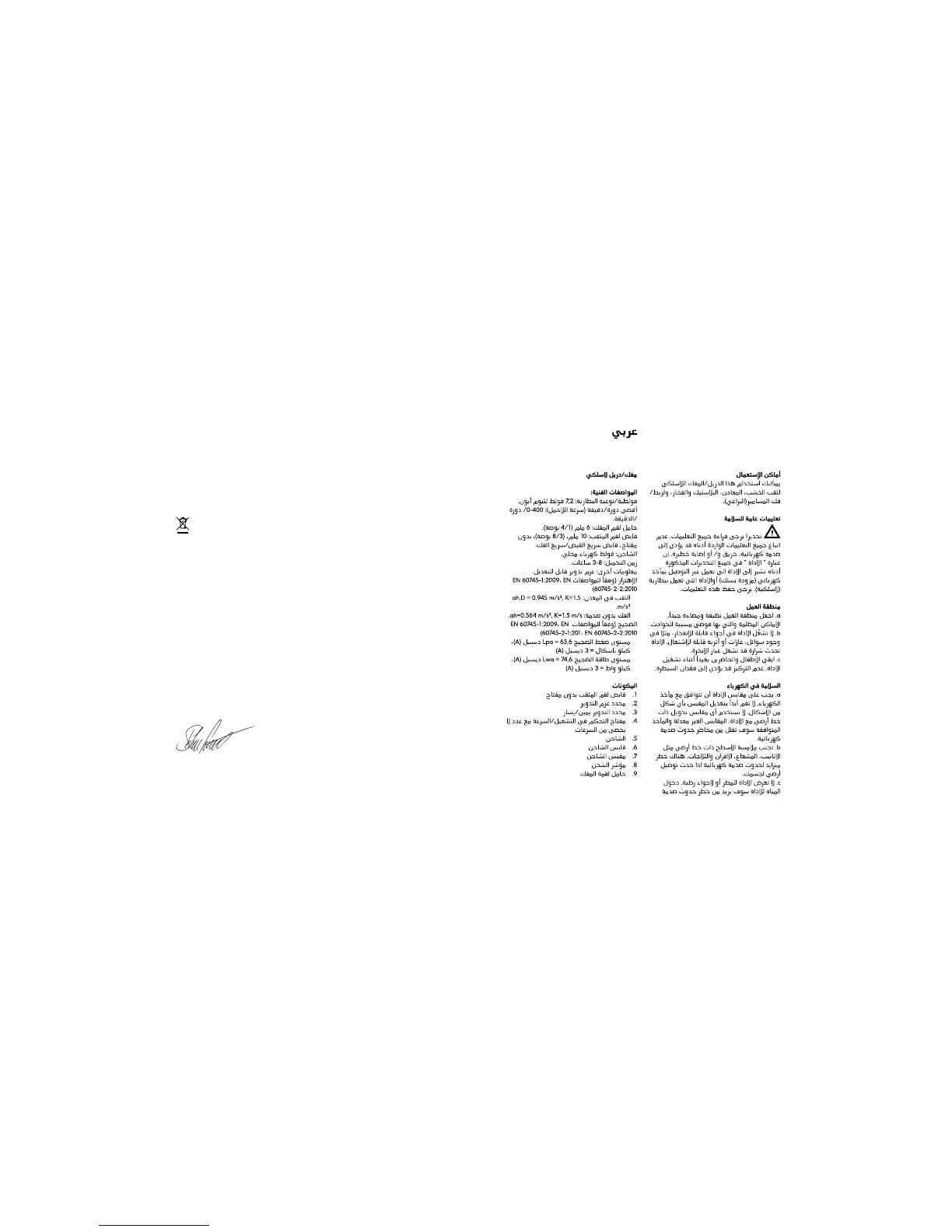 EN60745-2-1, in accordance with the provisions