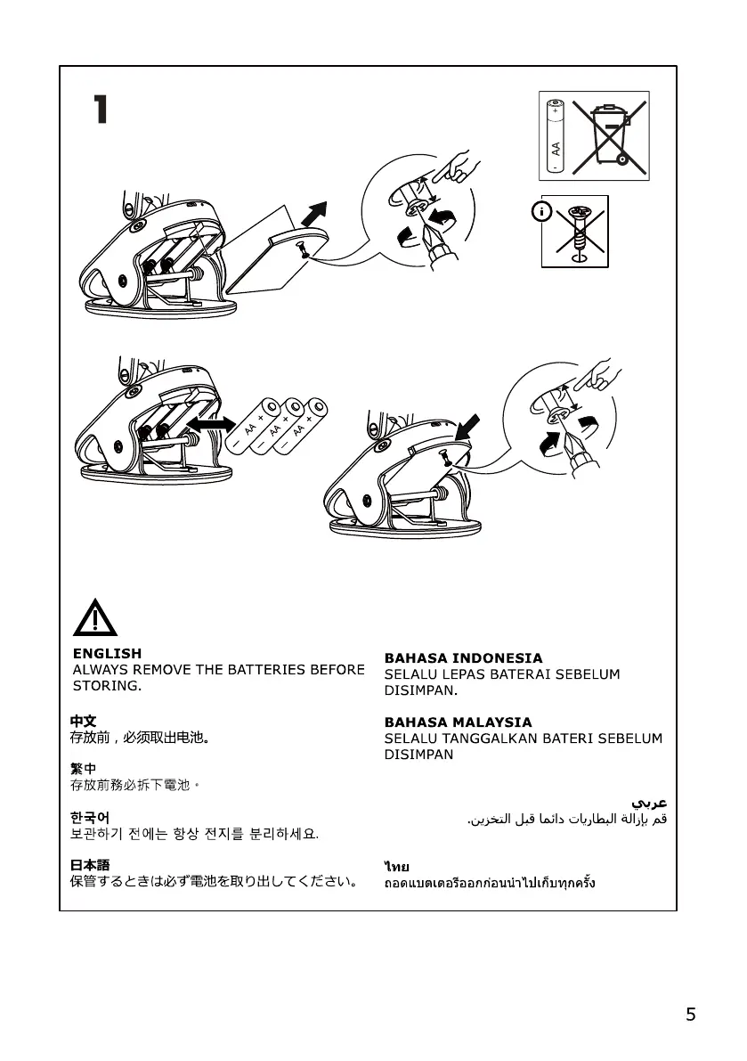 IKEA FLYAHULT - Battery Storage Safety; Remove Batteries Before Storing