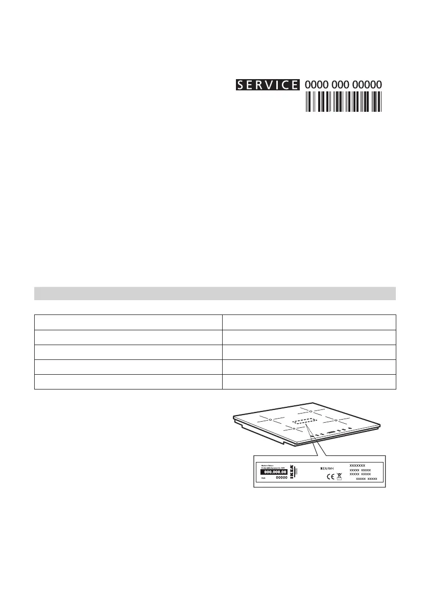 the hob and on the warranty certicate);