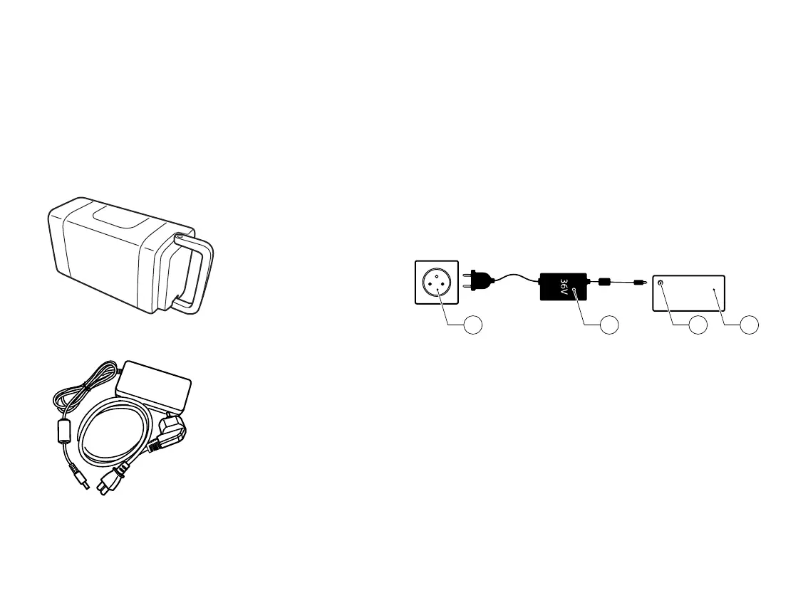 • Je kan de accu tijdens het laden op de elektrische ets laten