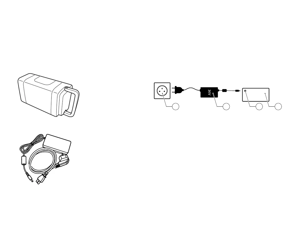 • Du kan enten lade batteriet på elsykkelen eller ta det av