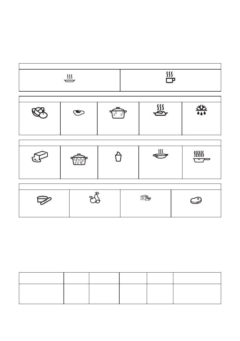 Tehoasetuksien suositukset erilaisiin ruokiin