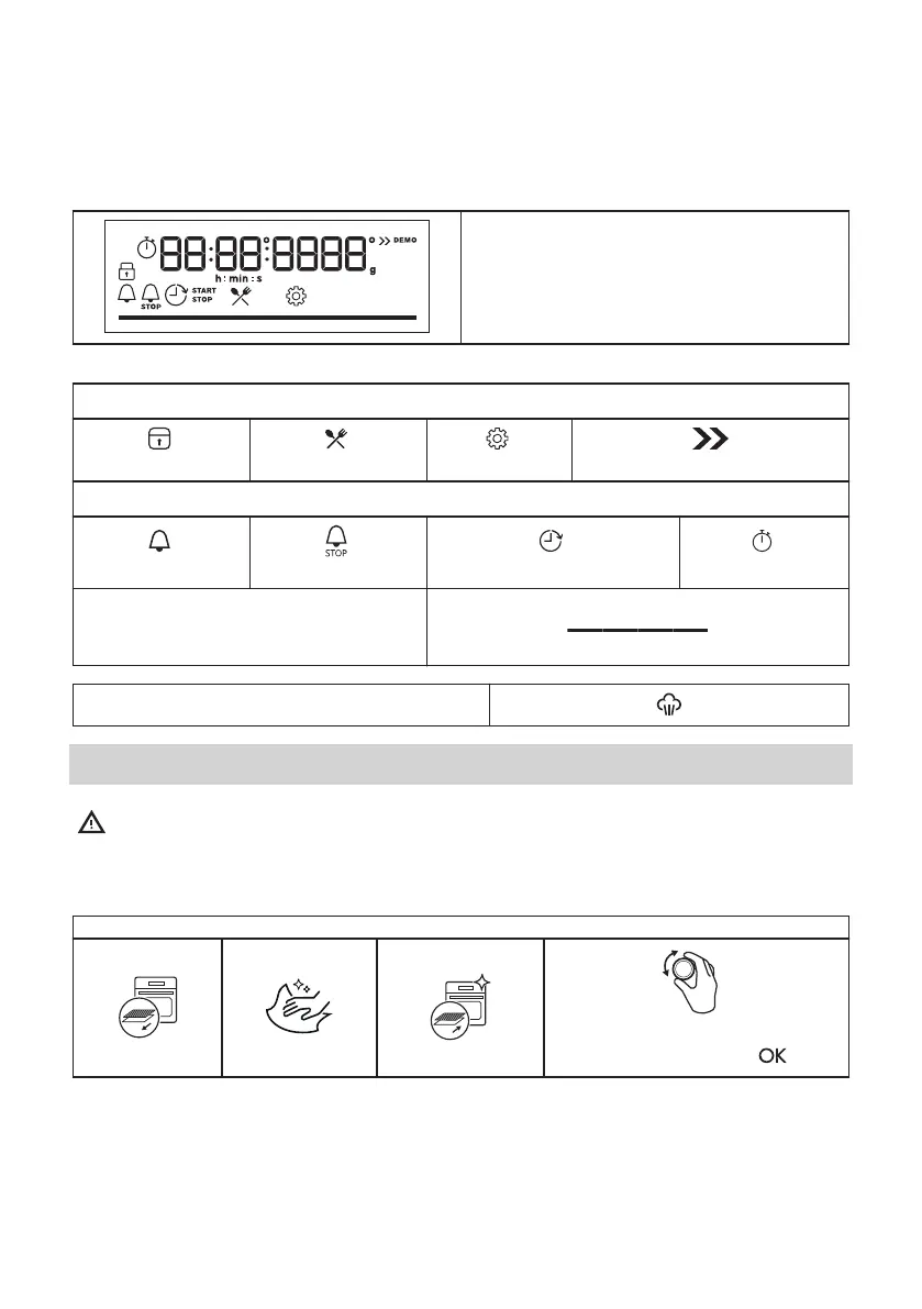 IKEA Forneby - Display and Initial Setup; Display Functions and Indicators; Initial Cleaning and Time Setting