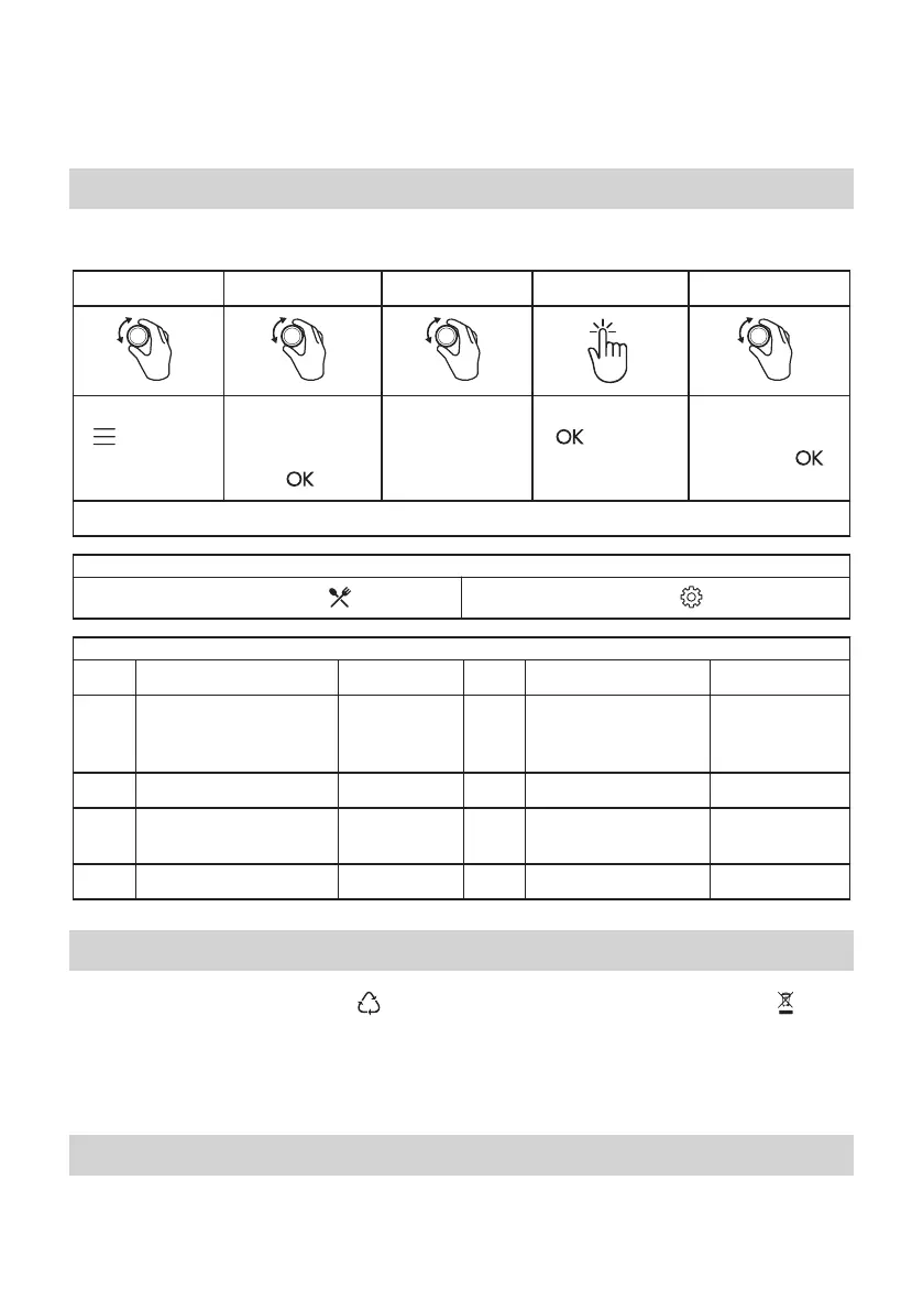 Turn the knob for the heating functions to the o position to exit the Menu.