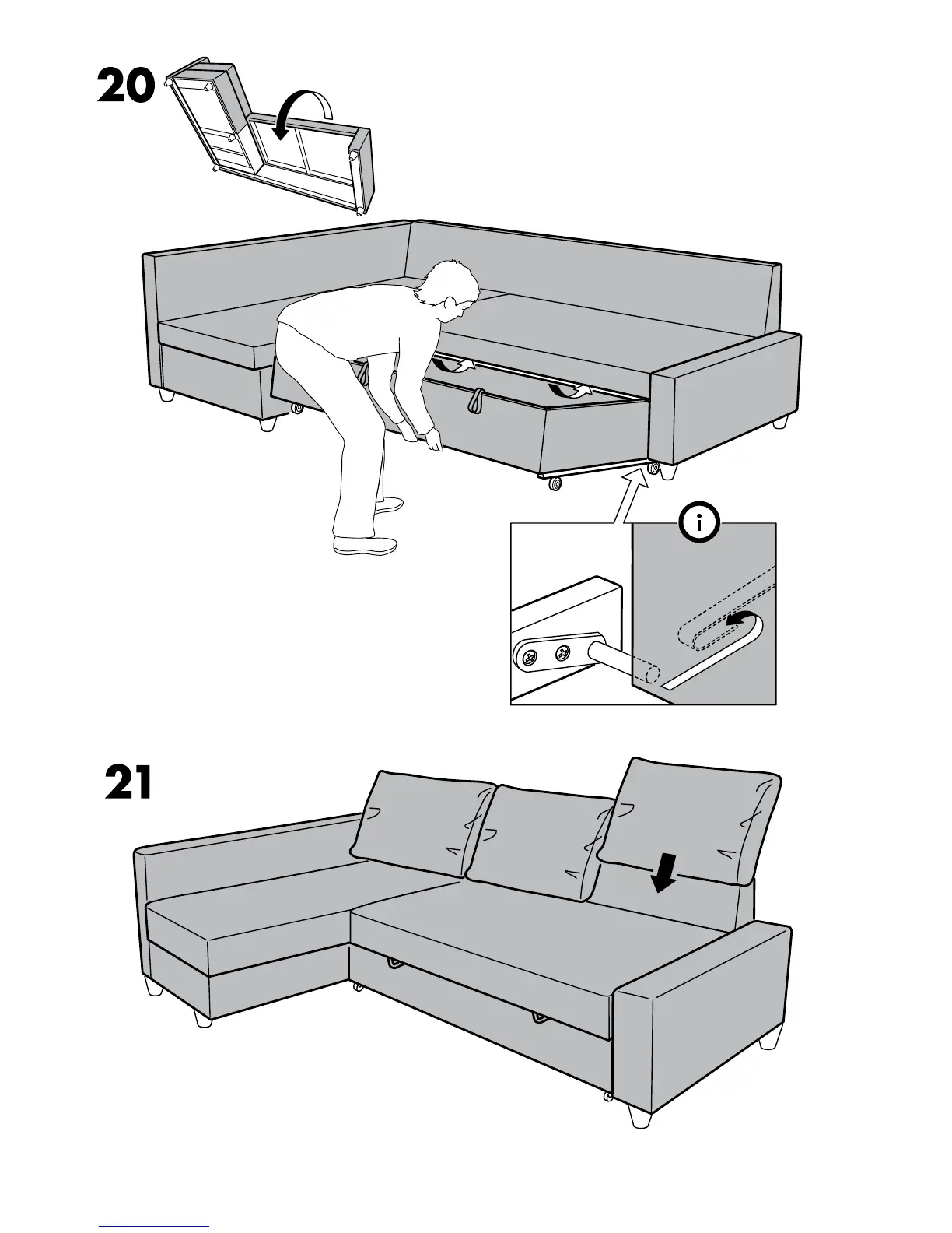 IKEA FRIHETEN - FRIHETEN Sofa Bed Functionality; Deploying the Sofa Bed Mechanism