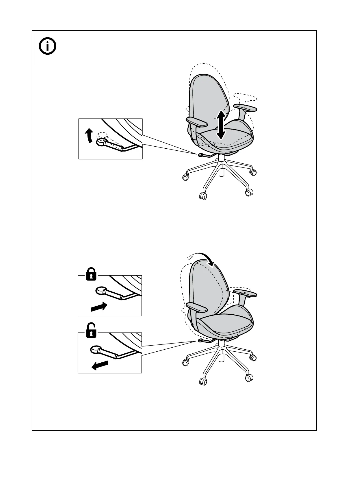 IKEA HATTEFJALL - Seat Adjustments and Locking; Seat Depth Adjustment; Tilt Lock Operation