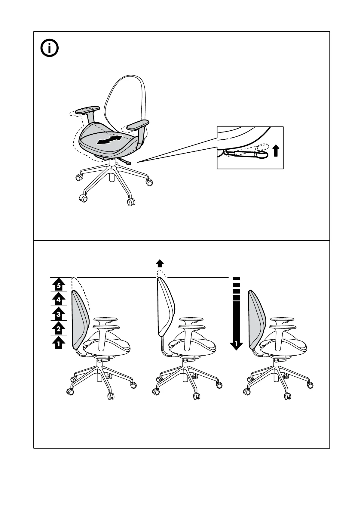 IKEA HATTEFJALL - Advanced Seat Controls; Seat Angle Adjustment; Height Adjustment Indicators