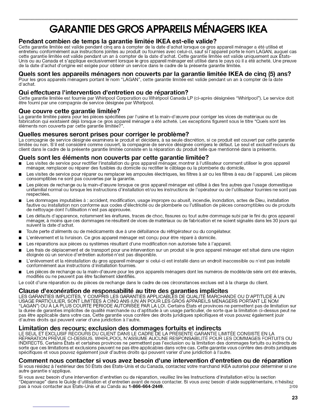 pas a nous contacter aux €:tats-Unis et au Canda au 1-866-664-2449. 2/09