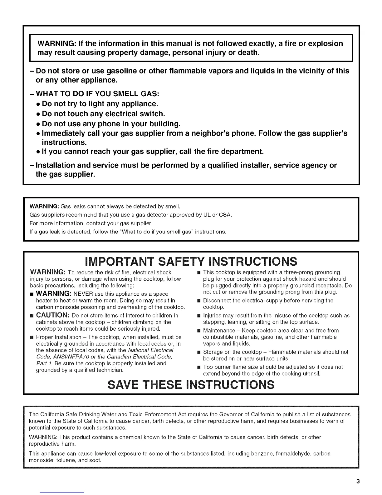 WARNING: If the information in this manual is not followed exactly, a fire or explosion