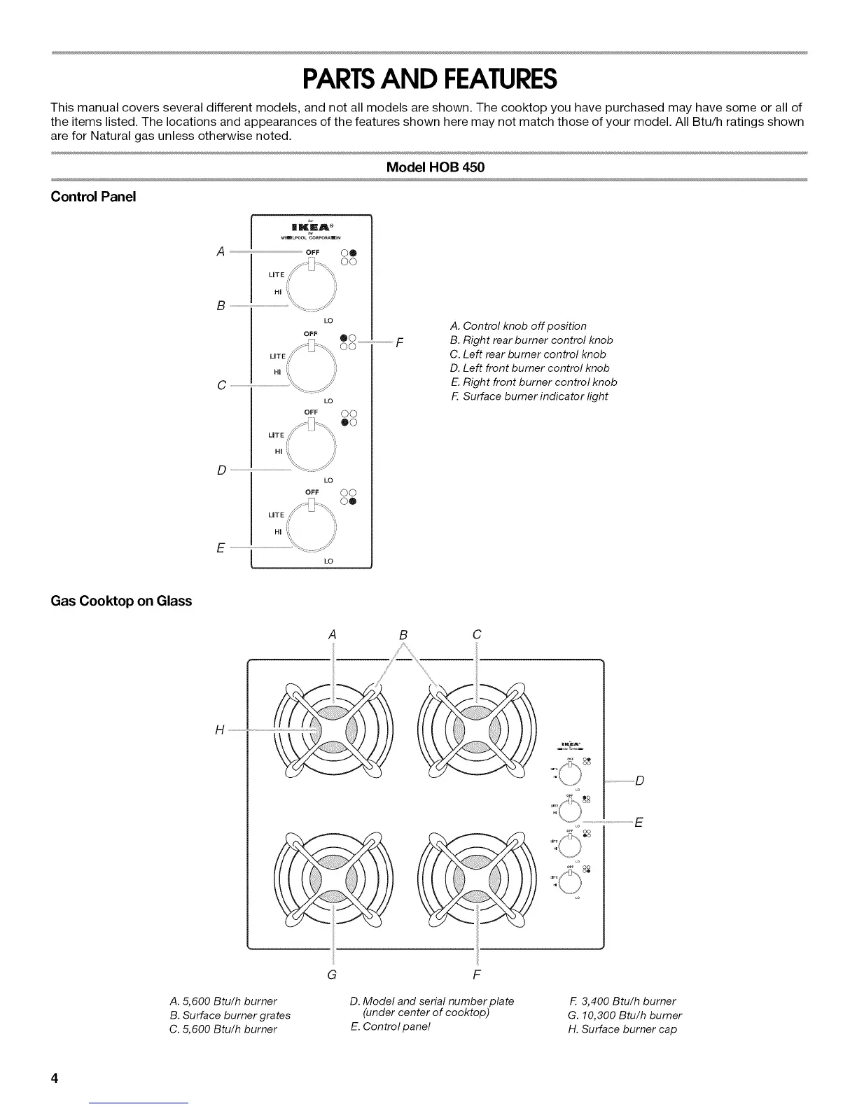 This manual covers several different models, and not all models are shown. The cooktop you have purchased may have some or all of