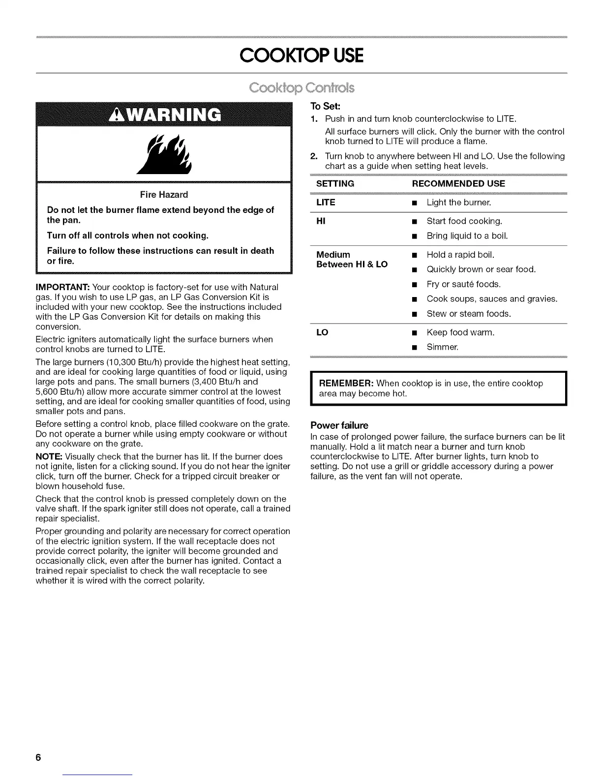 IMPORTANT: Your cooktop is factory-set for use with Natural