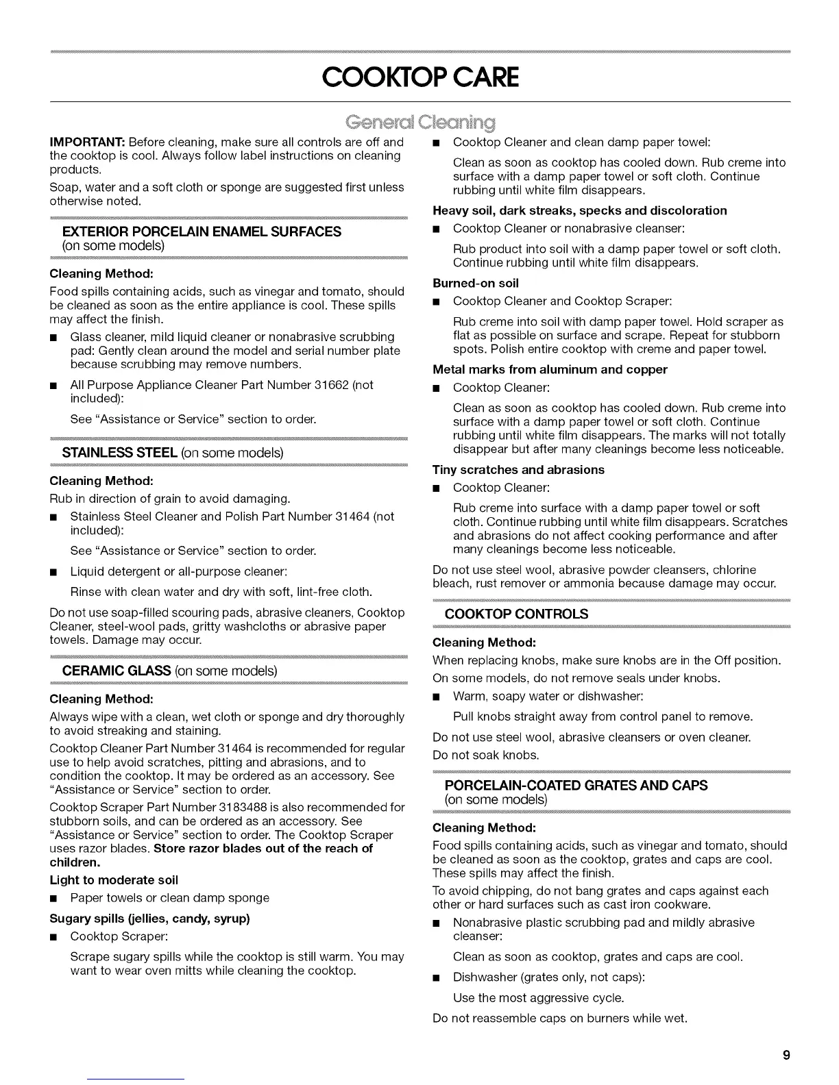 Cooktop Cleaner Part Number 31464 is recommended for regular
