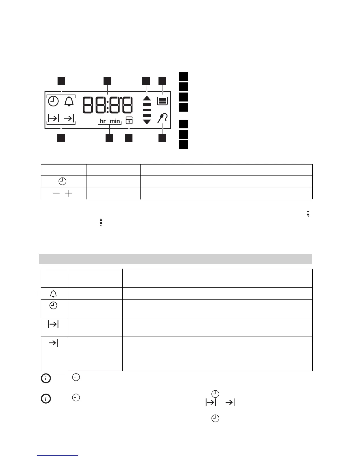 Minus, plus To set the time.