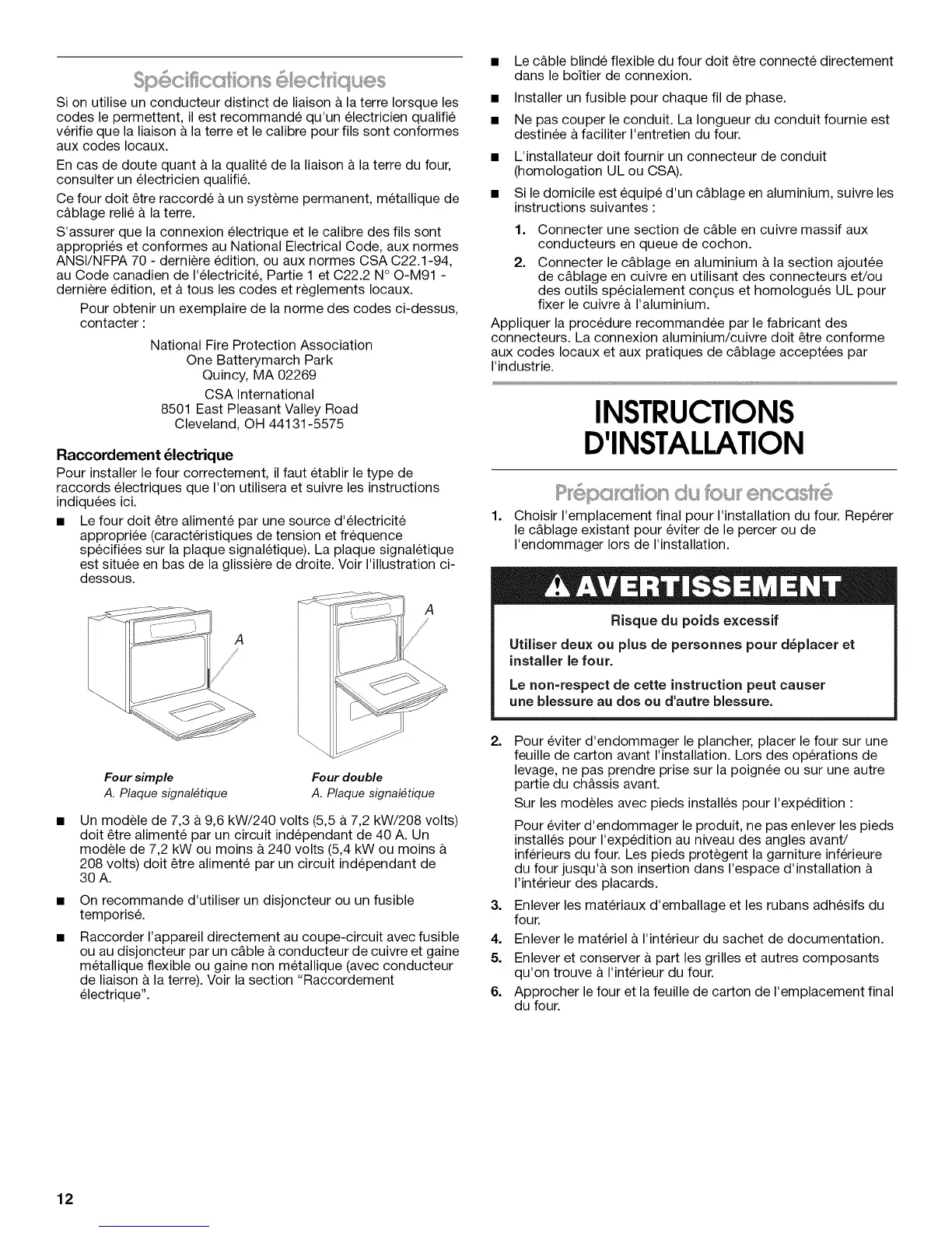 ANSI/NFPA 70 - derniere edition, ou aux normes CSA C22.1-94,
